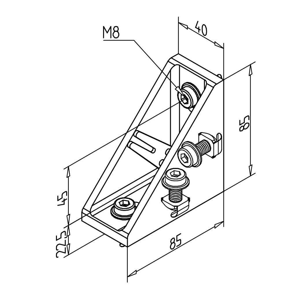 Escuadra 45x90 GD-Z conductiva, tuerca